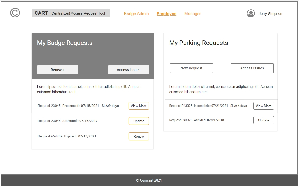 Towards the end of the COVID pandemic, in 2021, Comcast senior management initiated the return to office campaign. One of the goals was to improve the efficiency of the access card request process. The facilities department came up with their business requirements for an access request tool.