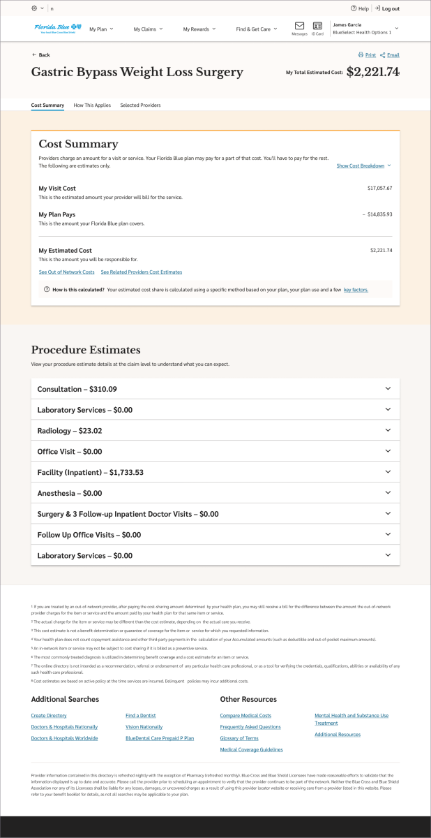 Florida Blue’s member portal is a crucial channel for the organization, user feedback is constantly sought to help improve customer experience. The Find Care experience is one of the most used section of the site. This project involved improving the search results pages, based on user research.